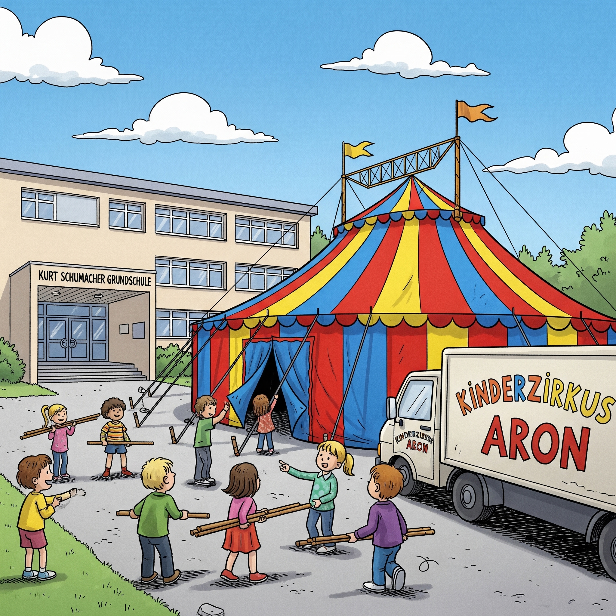 Bis zum letzten Freitag gastierte der Kinderzirkus ARON bei uns. Eine Woche hatten die Schüler und Schülerinnen Zeit, sich mit den Artisten auf die Abschlussvorstellung vorzubereiten. Am Freitag kamen viele Eltern zur Manege, um ihren Kindern bei der Vorführung ihrer artistischen Kunststücke bei zu wohnen.